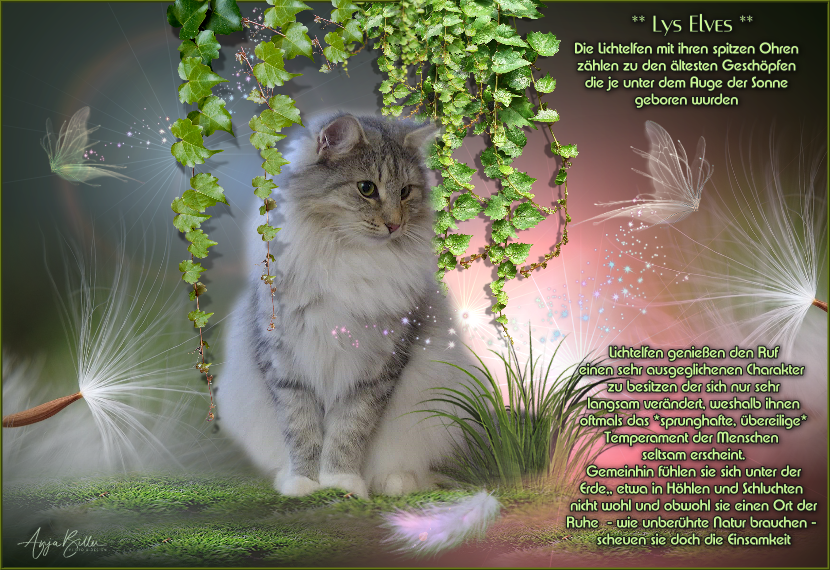Light elves enjoy the reputation of having a very balanced character that changes only very slowly, which is why they often find the "jumpy, over-temperament" of people strange.Generally, they do not feel comfortable underground, in caves and ravines, for example, and although they need a place of tranquility, such as untouched nature, they still shy away from loneliness.